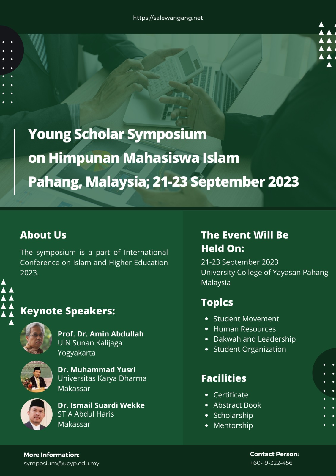 Simposium ini akan dilaksanakan pada tanggal 21-23 September 2023 di Pahang, Malaysia. Simposium ini akan menghadirkan narasumber dari berbagai lembaga akademik, pemerintah, swasta, dan organisasi kemasyarakatan.