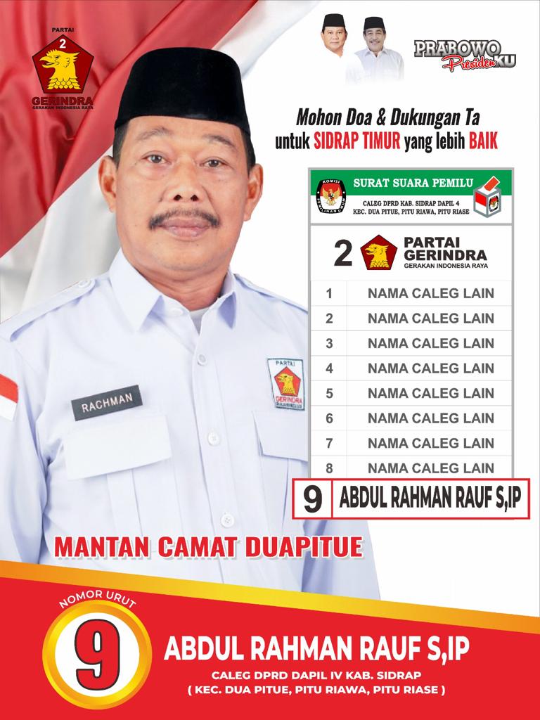 Diketahui pada pemilu 2024 mendatang Rahman Rauf maju sebagai Bakal Calon Legislatif (Bacaleg) Kabupaten Sidrap melalui Partai Gerindra untuk Dapil 4, Dua Pitue, Pitu Riase, dan Pitu Riawa.(*)