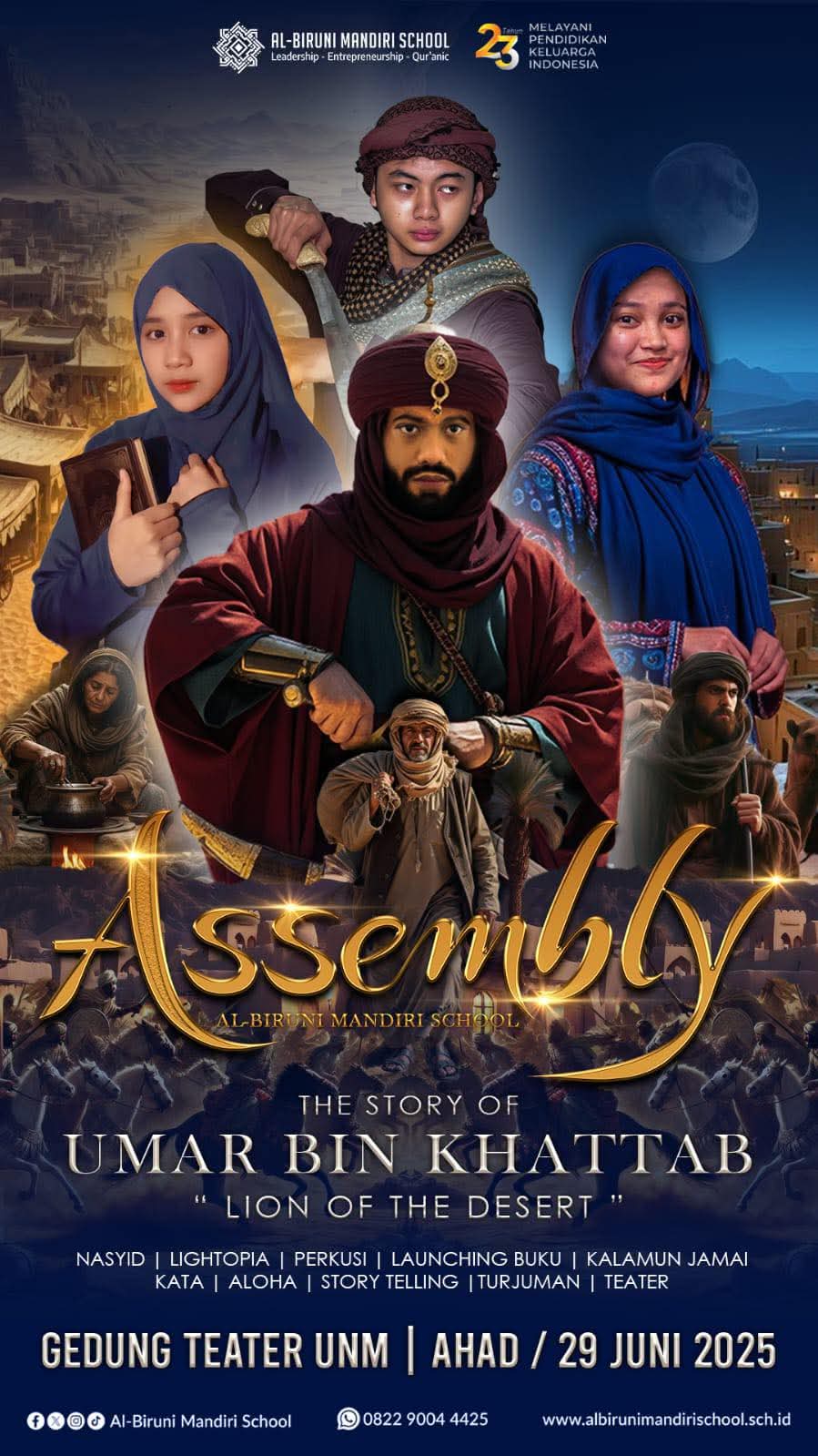 Sebagai penutup rangkaian acara, siswa SMP dan SMA menampilkan drama kolosal berjudul “The Story of Umar bin Khattab – Lion of the Desert”. Pertunjukan ini mengisahkan perjalanan hidup dan kepemimpinan Umar bin Khattab RA sebagai Amirul Mukminin.