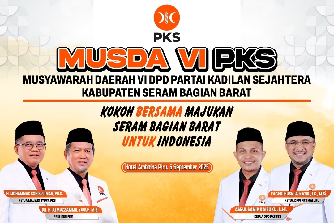 Piru,SBB,Edarinfo.com – Partai Keadilan Sejahtera (PKS) Kabupaten Seram Bagian Barat (SBB) sukses menggelar Musyawarah Daerah (Musda) ke-VI pada hari Sabtu, 6 September 2025, di Hotel Amboina, Piru. Acara ini menjadi…