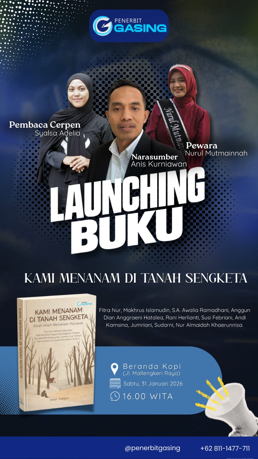 Informasi lebih lanjut terkait kegiatan launching buku ini dapat diakses melalui akun Instagram @penerbitgasing atau melalui kontak +62 811-1477-711. (*)